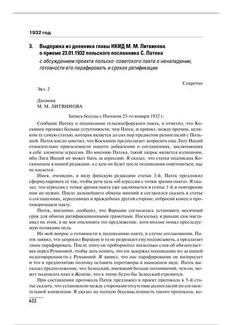 Главная Советско-польские отношения в 1918-1945 гг. Советско-польские отношения в 1918-1945 гг. Т. 2. 1926-1932 Выдержка из дневника главы НКИД М.М. Литвинова о приеме 23.01.1932 ...