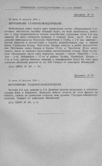 Прикрытие мобилизации 1-й и 2-й армий. Верховному главнокомандующему. 22 июля (4 августа) 1914 г. [1] // Дело ЦВИА № 287, л. 107.