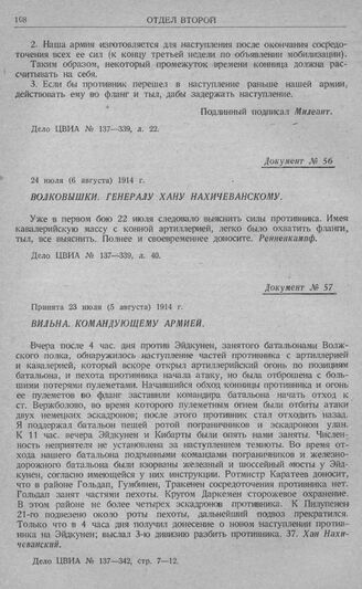 Действия конницы 1-й и 2-й армий в период сосредоточения армий. Волковышки. Генералу Хану Нахичеванскому. 24 июля (6 августа) 1914 г. // Дело ЦВИА № 137—339, л. 40.