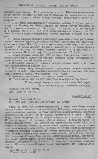 Действия конницы 1-й и 2-й армий в период сосредоточения армий. Из Цеханов. Начальнику штаба 2-й армии. 27 июля (9 августа) 1914 г.
