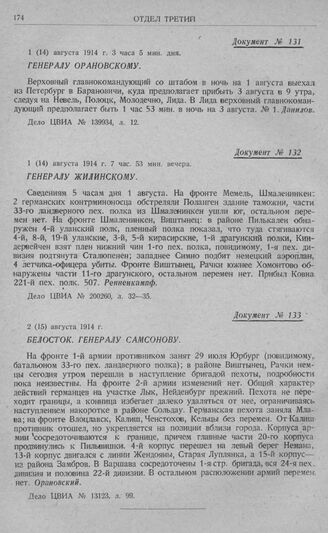 Развертывание 2-й армии и занятие ею исходного положения для наступления. Генералу Жилинскому. 1 (14) августа 1914 г. 7 час. 53 мин. вечера // Дело ЦВИА № 200260, л. 32—35.