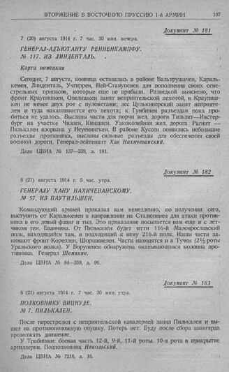 Гумбинен-Гольдапское сражение 1-й армии. Генерал-адъютанту Ренненкампфу. № 117. Из Линденталь. 7 (20) августа 1914 г. 7 час. 30 мин. вечера