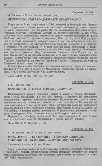 Гумбинен-Гольдапское сражение 1-й армии. Вержболово. Генерал-адъютанту Ренненкампфу. 8 (21) августа 1914 г. 10 час. 40 мин. дня // Дело ЦВИА № 137—339, лл. 175—179.
