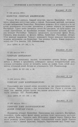 Наступление 1-й армии в направлении на Кенигсберг. Генералу Шейдеману. 12 (25) августа 1914 г.