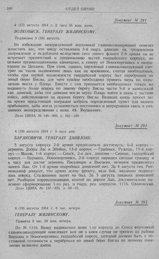 Вторжение 2-й армии в Восточную Пруссию и выход на линию Ортельсбург, Виленберг, Нейденбург, Сольдау. Генералу Жилинскому. 6 (19) августа 1914 г. 8 час. вечера