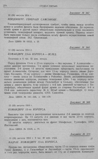 Наступление 2-й армии на фронт Алленштейн, Остероде и бои на флангах у Бишофсбург (6-й корпус) и Уздау (1-й корпус). Нейденбург. Генералу Самсонову. 13 (26) августа 1914 г. // Дело ЦВИА № 13123, л. 25.