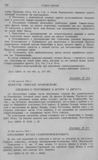 Наступление 2-й армии на фронт Алленштейн, Остероде и бои на флангах у Бишофсбург (6-й корпус) и Уздау (1-й корпус). Начальнику штаба главнокомандующего. 13 (26) августа 1914 г.