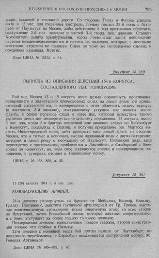 Наступление 2-й армии на фронт Алленштейн, Остероде и бои на флангах у Бишофсбург (6-й корпус) и Уздау (1-й корпус). Командующему армией. 13 (26) августа 1914 г. 5 час. дня // Дело ЦВИА № 140—929, л. 40.