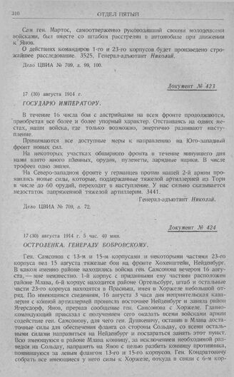 Действия центральных корпусов 2-й армии (13-го, 15-го и части 23-го). Государю Императору. 17 (30) августа 1914 г. // Дело ЦВИА № 709, л. 72.