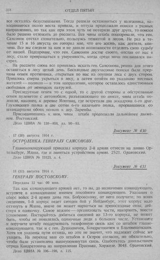 Действия центральных корпусов 2-й армии (13-го, 15-го и части 23-го). Генералу Постовскому. 18 (31) августа 1914 г. // Дело ЦВИА № 106—198, л. 115.