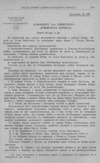 Отход 10-й армии на р. Бобр. Командиру 3-го сибирского армейского корпуса. Осовец. 31 августа (13 сентября)1914 г. // Дело ЦВИА № 14501, лл. 17—18.