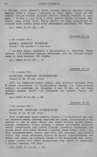 Отход 10-й армии на р. Бобр. Ломжа. Генералу Ерофееву. 1 (14) сентября 1914 г. // Дело ЦВИА № 137—555, л. 167.