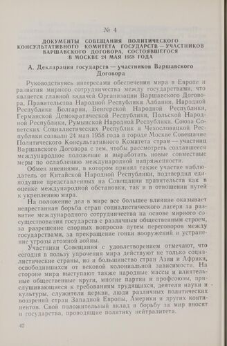 Документы совещания Политического консультативного комитета государств — участников Варшавского договора, состоявшегося в Москве 24 мая 1958 года. Декларация государств — участников Варшавского Договора. 24 мая 1958 г.