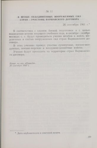 В Штабе объединенных вооруженных сил стран — участников Варшавского договора. 26 сентября 1961 г. // Печат. по газ. «Правда», 26 сентября 1961 г.