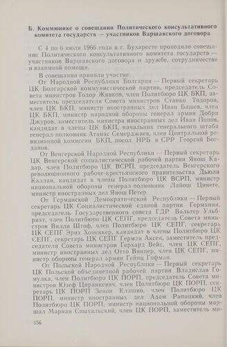 Документы совещания Политического консультативного комитета государств — участников Варшавского договора, состоявшегося в Бухаресте 4-6 июля 1966 года. Коммюнике о совещании Политического консультативного комитета государств — участников Варшавско...