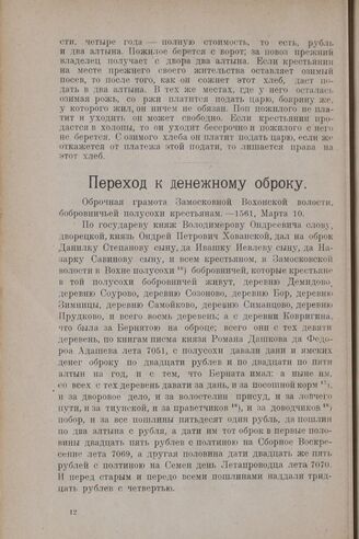 Переход к денежному оброку. Оброчная грамота Замосковной Вохонской ...