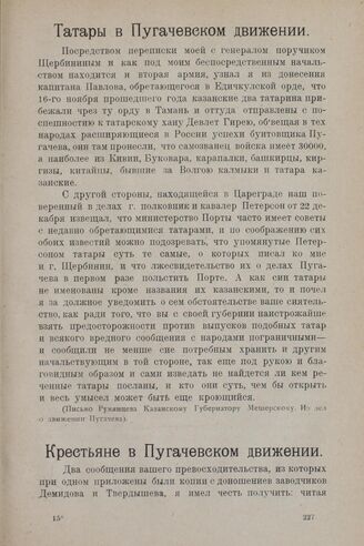 Татары в Пугачевском движении. Письмо Румянцева Казанскому Губернатору Мещерскому // Из дел о движении Пугачева.