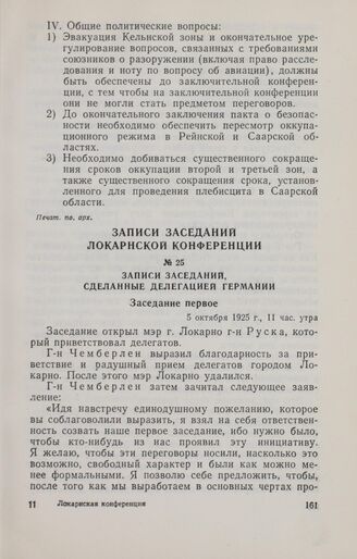 Записи заседаний Локарнской конференции. Записи заседаний, сделанные делегацией Германии. Заседание первое. 5 октября 1925 г.