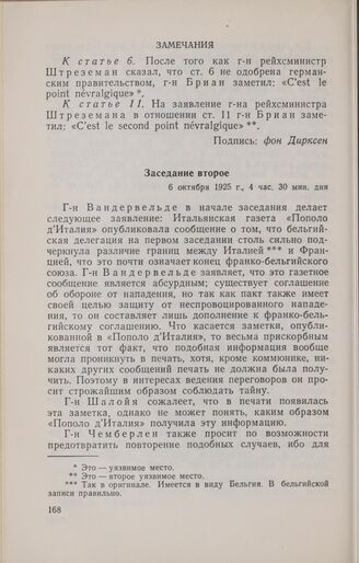 Записи заседаний Локарнской конференции. Записи заседаний, сделанные делегацией Германии. Заседание второе. 6 октября 1925 г.