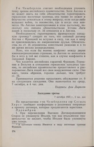 Записи заседаний Локарнской конференции. Записи заседаний, сделанные делегацией Германии. Заседание третье. 7 октября 1925 г.