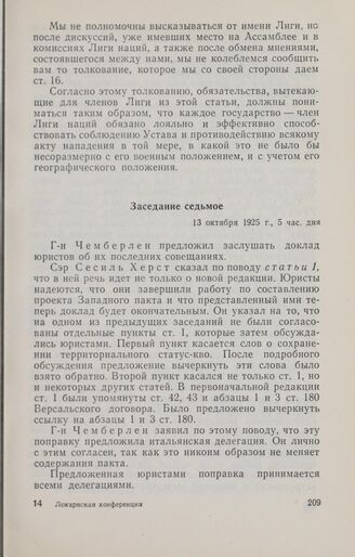 Записи заседаний Локарнской конференции. Записи заседаний, сделанные делегацией Германии. Заседание седьмое. 13 октября 1925 г.