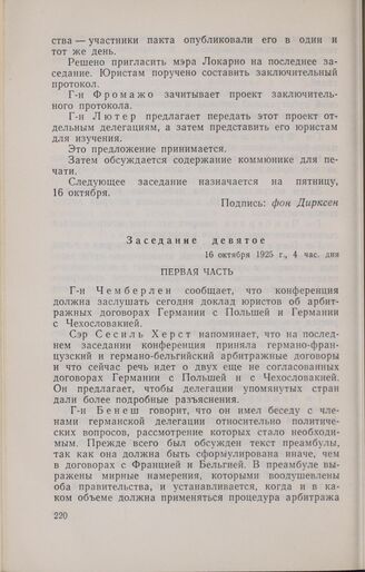 Записи заседаний Локарнской конференции. Записи заседаний, сделанные делегацией Германии. Заседание девятое. 16 октября 1925 г.