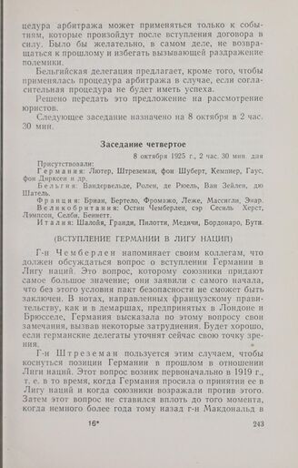 Записи заседаний Локарнской конференции. Записи заседаний, сделанные делегацией Франции. Заседание четвертое. 8 октября 1925 г.