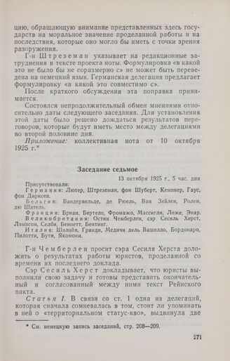 Записи заседаний Локарнской конференции. Записи заседаний, сделанные делегацией Франции. Заседание седьмое. 13 октября 1925 г.