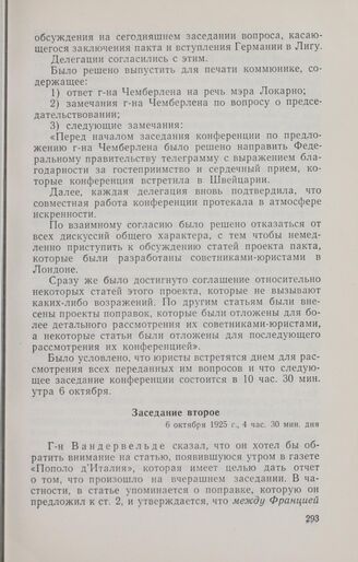 Записи заседаний Локарнской конференции. Записи заседаний, сделанные делегацией Великобритании. Заседание второе. 6 октября 1925 г.