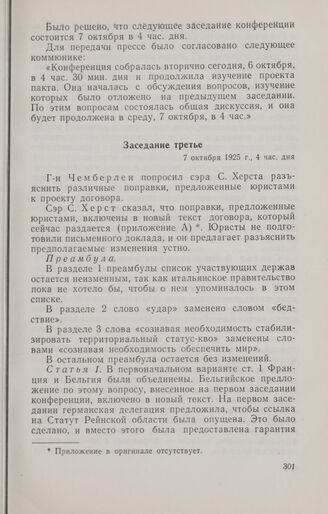 Записи заседаний Локарнской конференции. Записи заседаний, сделанные делегацией Великобритании. Заседание третье. 7 октября 1925 г.