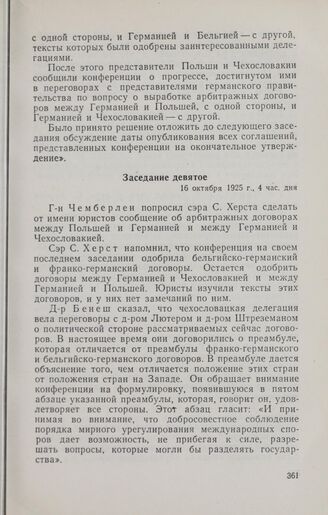 Записи заседаний Локарнской конференции. Записи заседаний, сделанные делегацией Великобритании. Заседание девятое. 16 октября 1925 г.