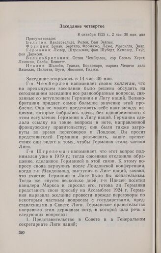 Записи заседаний Локарнской конференции. Записи заседаний, сделанные делегацией Италии. Заседание четвертое. 8 октября 1925 г.