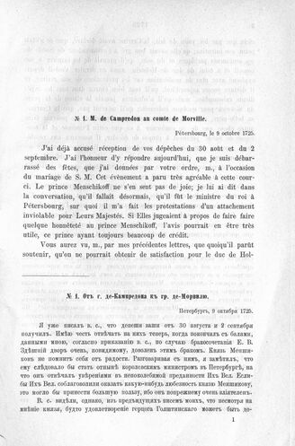 Донесения французского полномочного министра при русском дворе, Кампредона, и агента Маньяна, за 1725 и 1727 гг. От г. де-Кампредона к гр. де-Морвилю. Петербург, 9 октября 1725 г.