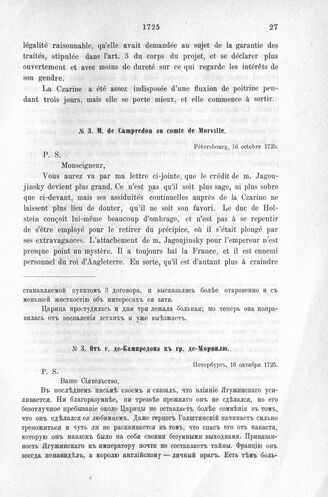 Донесения французского полномочного министра при русском дворе, Кампредона, и агента Маньяна, за 1725 и 1727 гг. От г. де-Кампредона к гр. де-Морвилю. Петербург, 16 октября 1725 г.