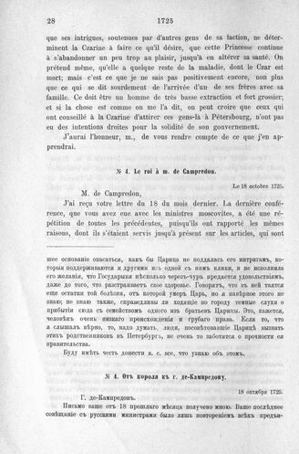 Донесения французского полномочного министра при русском дворе, Кампредона, и агента Маньяна, за 1725 и 1727 гг. От короля к г. де-Кампредону. 18 октября 1725 г.
