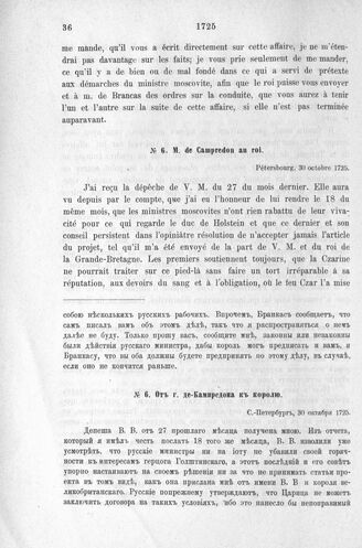 Донесения французского полномочного министра при русском дворе, Кампредона, и агента Маньяна, за 1725 и 1727 гг. От г. де-Кампредона к королю. С.-Петербург, 30 октября 1725 г.