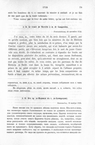Донесения французского полномочного министра при русском дворе, Кампредона, и агента Маньяна, за 1725 и 1727 гг. От гр. де-Морвиля к г. де-Кампредону. Фентенебло, 19 ноября 1725 г.