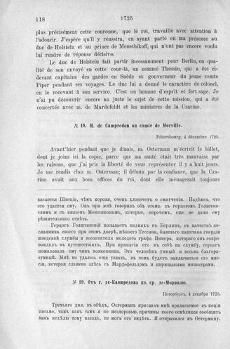 Донесения французского полномочного министра при русском дворе, Кампредона, и агента Маньяна, за 1725 и 1727 гг. От г. де-Кампредона к гр. де-Морвилю. Петербург, 4 декабря 1725 г.