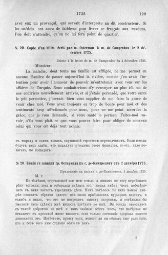 Донесения французского полномочного министра при русском дворе, Кампредона, и агента Маньяна, за 1725 и 1727 гг. Копия с записки гр. Остермана к г. де-Кампредону от 2 декабря 1725 г. Приложение к письму г. де-Кампредона, 4 декабря 1725 г.