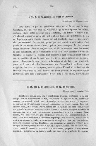 Донесения французского полномочного министра при русском дворе, Кампредона, и агента Маньяна, за 1725 и 1727 гг. От г. де-Кампредона к гр. де-Морвилю. Петербург, 11 декабря 1725 г.