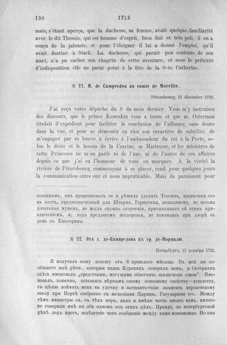 Донесения французского полномочного министра при русском дворе, Кампредона, и агента Маньяна, за 1725 и 1727 гг. От г. де-Кампредона к гр. де-Морвилю. Петербург, 11 декабря 1725 г.