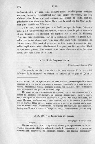 Донесения французского полномочного министра при русском дворе, Кампредона, и агента Маньяна, за 1725 и 1727 гг. От г. де-Кампредона к королю. Петербург, 3 января 1726 г.