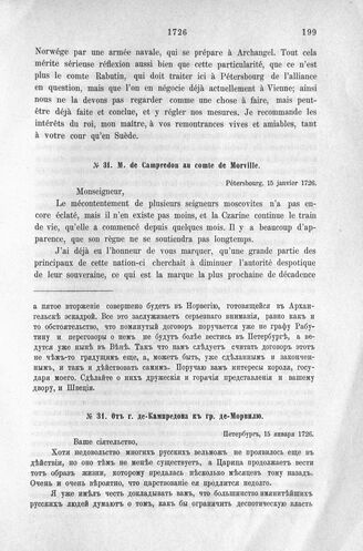 Донесения французского полномочного министра при русском дворе, Кампредона, и агента Маньяна, за 1725 и 1727 гг. От г. де-Кампредона к гр. де-Морвилю. Петербург, 15 января 1726 г.