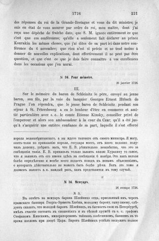 Донесения французского полномочного министра при русском дворе, Кампредона, и агента Маньяна, за 1725 и 1727 гг. Мемуар. 26 января 1726 г.
