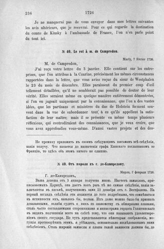 Донесения французского полномочного министра при русском дворе, Кампредона, и агента Маньяна, за 1725 и 1727 гг. От короля к г. де-Кампредону. Марли, 7 февраля 1726 г.