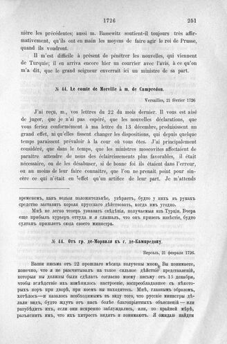Донесения французского полномочного министра при русском дворе, Кампредона, и агента Маньяна, за 1725 и 1727 гг. От гр. де-Морвиля к г. де-Кампредону. Версаль, 21 февраля 1726 г.