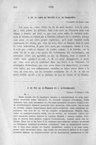 Донесения французского полномочного министра при русском дворе, Кампредона, и агента Маньяна, за 1725 и 1727 гг. От гр. де-Морвиля к г. де-Кампредону. Версаль, 28 февраля 1726 г.