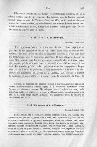 Донесения французского полномочного министра при русском дворе, Кампредона, и агента Маньяна, за 1725 и 1727 гг. От короля к г. де-Кампредону. Версаль, 7 марта 1726 г.