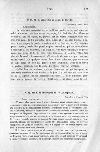 Донесения французского полномочного министра при русском дворе, Кампредона, и агента Маньяна, за 1725 и 1727 гг. От г. де-Кампредона к гр. де-Морвилю. Петербург, 9 марта 1726 г.