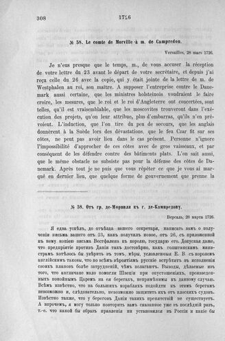 Донесения французского полномочного министра при русском дворе, Кампредона, и агента Маньяна, за 1725 и 1727 гг. От гр. де-Морвиля к г. де-Кампредону. Версаль, 28 марта 1726 г.